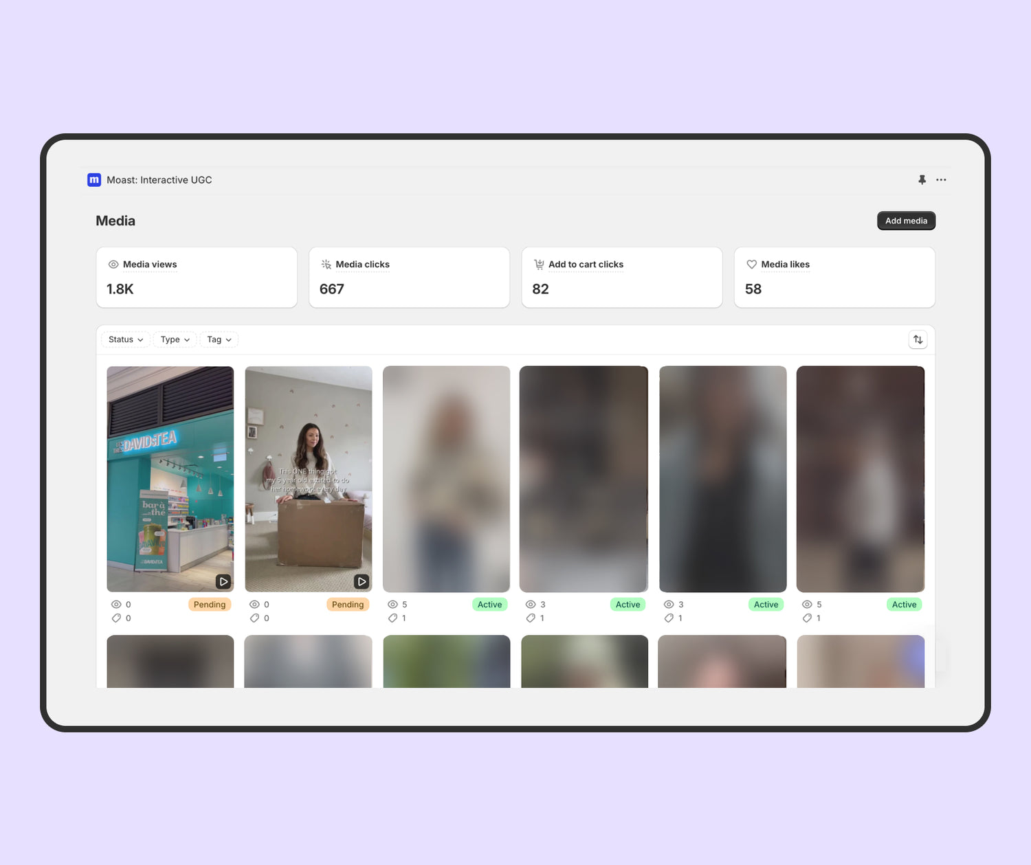 Once content is uploaded, you can review it in the Moast dashboard. Approve the content you want and Moast automatically adds it to your store's widget.